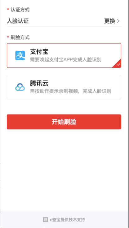注意:意愿签署方式与实名认证时选择的认证方式一致,无法切换其他方式。如:实名认证时选择人脸识别,则意愿签署为人脸识别,不能切换短信意愿签署。