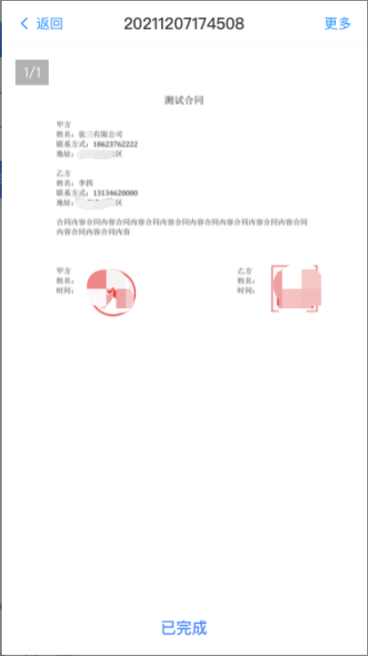 电子合同详情手机端增加下载合同、返回合同中心入口